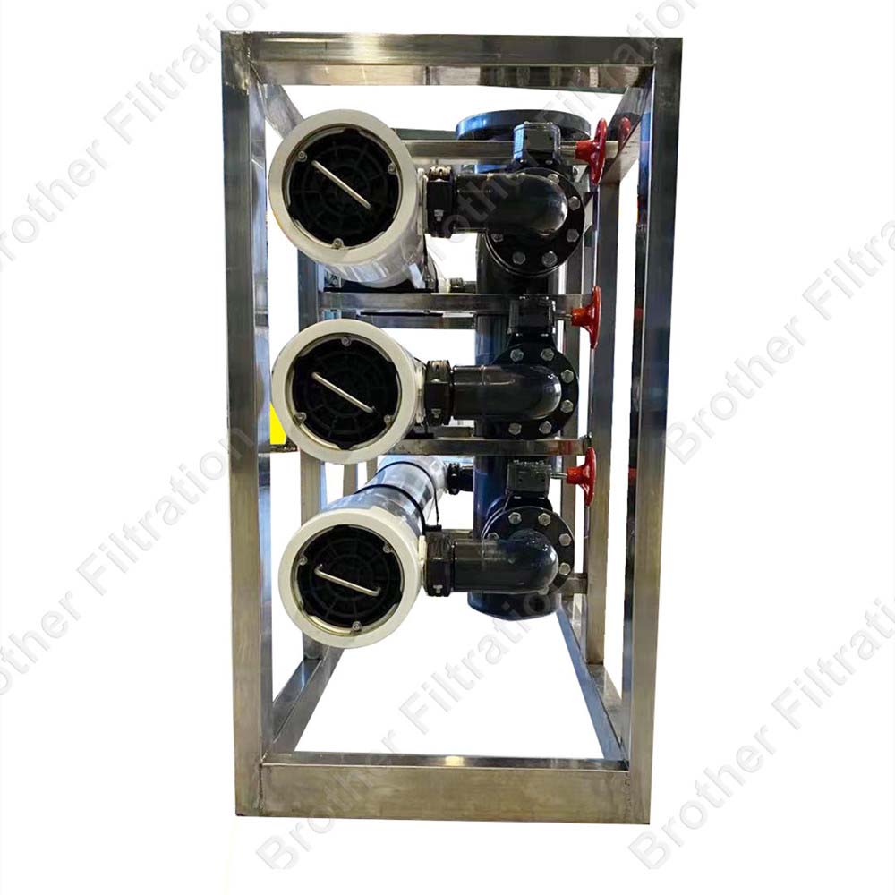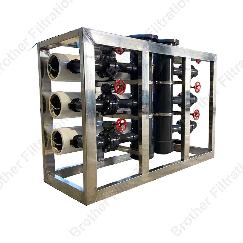 Brother Filtration FRP Skid with its large flow capacity, significantly lowers the equipment investment cost, and its standard design can be used in industrial water treatment and critical applications. FRP material is a wonderful option, especially for high salty water applications, such as seawater desalination, brine water filtration, acid chemical filtration, etc.
