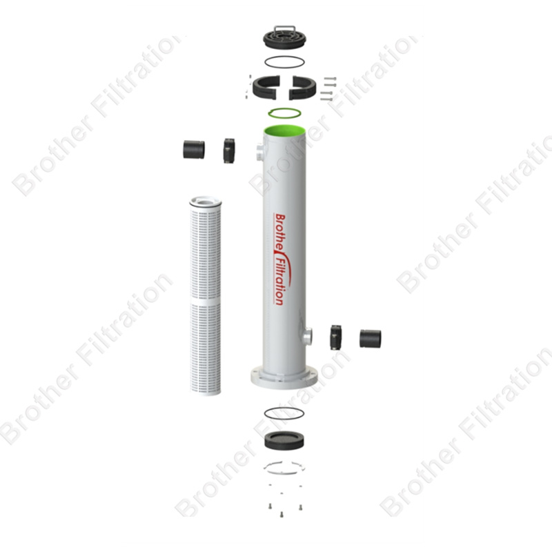 FRP-V Filter Housing can also match with FRP membrane vessels and match with Max-A (Pall Ultipleat equivalent) to reach a perfect filtration performance. Brother Filtration designs and manufactures it with a modular design, which has a small footprint and mobile ability.